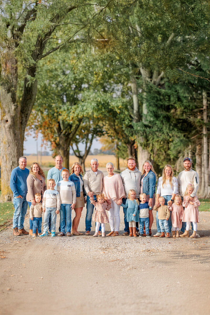 Extended family sessions are designed for large families and/or gatherings of 10 or more people. These sessions capture a mix of heartwarming large group photos, smaller family combinations, individual portraits of each child, and more. Pricing starts at $475 for the first 10 people, with an additional $25 per person beyond that